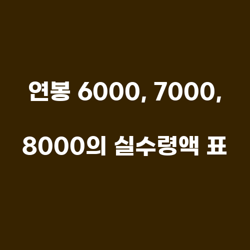 이제 본격적으로 연봉 6000, 7000, 8000의 실수령액을 알아보겠습니다. 아래는 각 연봉에 대한 실수령액의 표입니다.